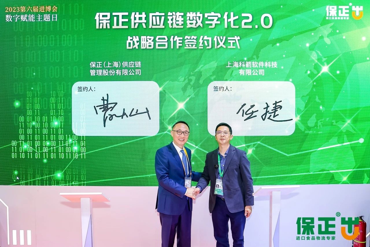 保正供應(yīng)鏈專注于為進(jìn)口食品企業(yè)提供高效專業(yè)的全程供應(yīng)鏈物流解決方案,并將數(shù)字化建設(shè)作為最重要的企業(yè)戰(zhàn)略方向之一。作為本屆進(jìn)博會(huì)參展商,保正供應(yīng)鏈在現(xiàn)場(chǎng)舉辦了保正供應(yīng)鏈數(shù)字化2.0發(fā)布會(huì)暨戰(zhàn)略合作伙伴簽約儀式,科箭華東區(qū)總經(jīng)理任捷先生作為合作企業(yè)代表受邀出席。