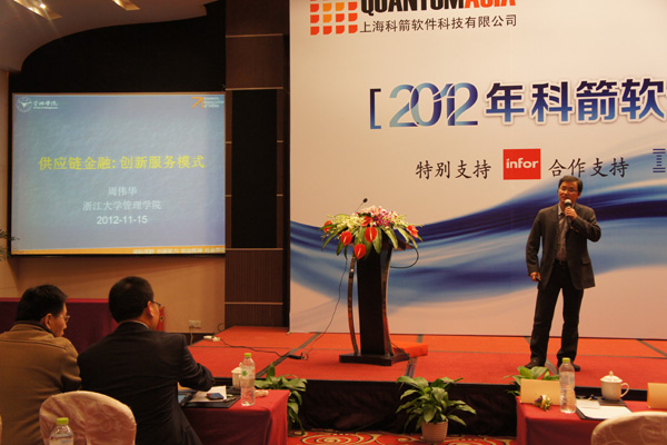 科箭最佳應用客戶-德莎國際貨運代理(上海)有限公司毛總介紹了德莎公司在中國業務拓展并講解客戶案例,如何結合科箭Power TMS及IBM ILOG的實施,優化汽車入場物流業務,從而幫助客戶降低物料配送成本。杭州海明控股供應鏈周經理介紹了Power WMS實施情況并分享服裝業供應鏈改造的必要性。蘇州易德龍電子有限公司ERP施經理結合本公司信息系統建設特點,分享了使用Visual ERP系統后的深化應用如質量系統、條碼系統、流程審批及電子倉庫系統等。