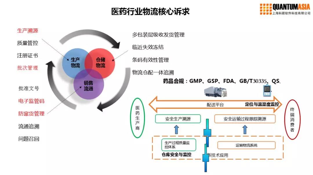 對醫(yī)藥行業(yè)的物流核心訴求進(jìn)行分析后,金鳴指出,科箭的箱/托條碼化、電子藥監(jiān)碼與追溯、智能物流設(shè)備(HME)物聯(lián)網(wǎng)(IoT)、供應(yīng)鏈計(jì)劃和優(yōu)化算法、供應(yīng)鏈可視化、移動(dòng)應(yīng)用、全程追溯和溫濕度監(jiān)控、Open API等解決方案,能夠輕松滿足醫(yī)藥行業(yè)的物流核心訴求。