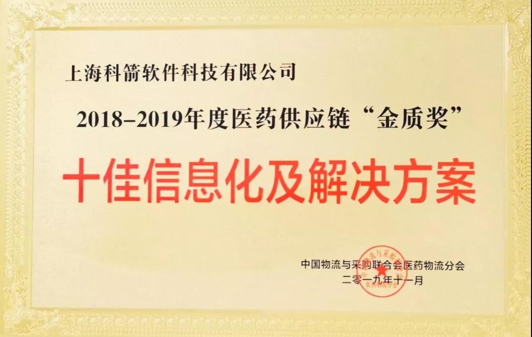 在這次盛會(huì)上,科箭軟件憑借多年深耕行業(yè)與供應(yīng)鏈領(lǐng)域的經(jīng)驗(yàn)和實(shí)踐,創(chuàng)新不停、進(jìn)步不止的敬業(yè)精神,基于供應(yīng)鏈云平臺Power SCM Cloud的科箭醫(yī)藥行業(yè)供應(yīng)鏈一體化解決方案,榮獲2018—2019(第三屆)醫(yī)藥供應(yīng)鏈“金質(zhì)獎(jiǎng)”。