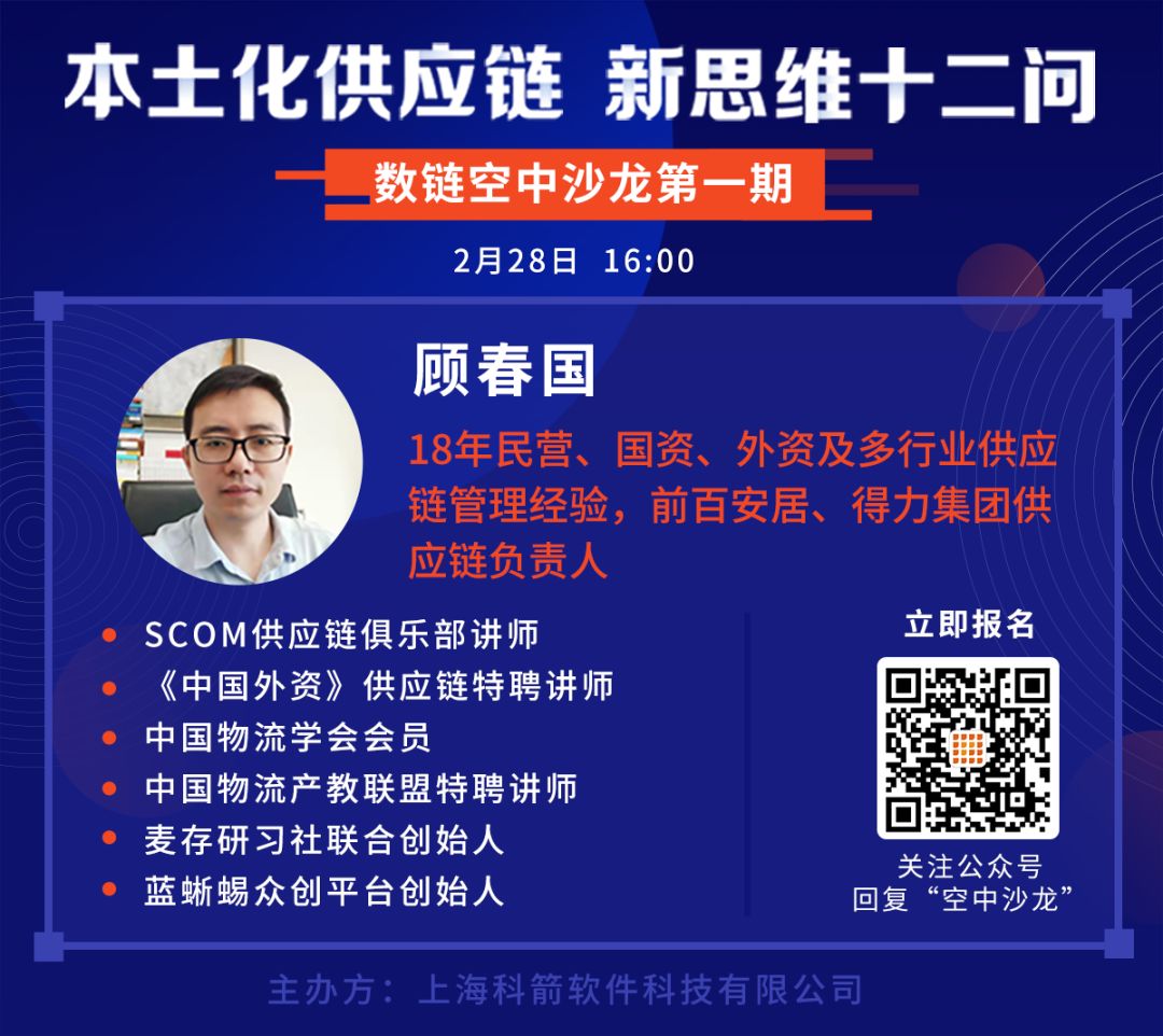 2月28日(明天)16點,科箭市場部將推出“數(shù)鏈空中沙龍“系列活動,邀請行業(yè)大咖為大家分享供應鏈的相關知識及行業(yè)經驗。