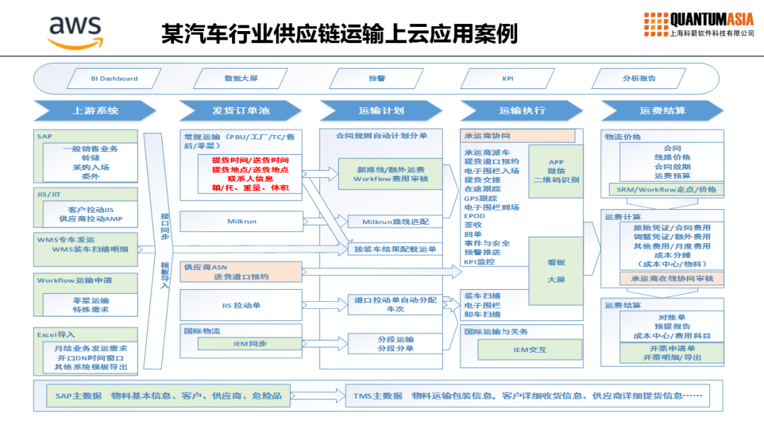 這是在亞馬遜上做的汽車行業運輸上游的案例。在運輸精細化管理方面,汽車零部件企業、整車企業已經走在前面,汽車廠商有很多精細化的系統,包括ERP、WMS等等,已經有很深入的應用。