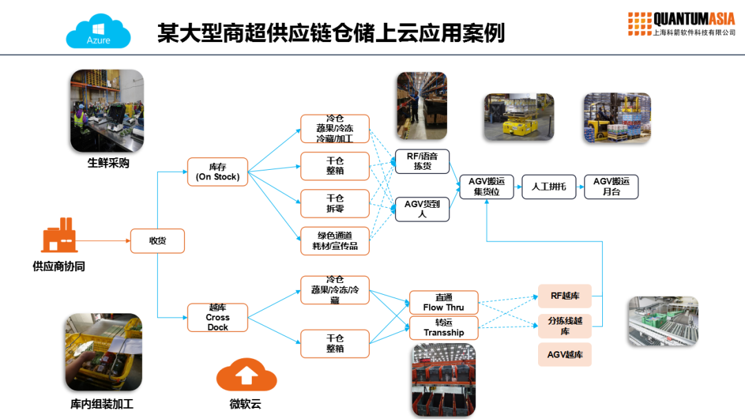 這家部署在微軟云上的大型商超客戶,通過云實現了整個倉庫的管理,包括中央倉、衛星倉、DC倉,其中有干倉、冷倉、云倉等各種倉庫。