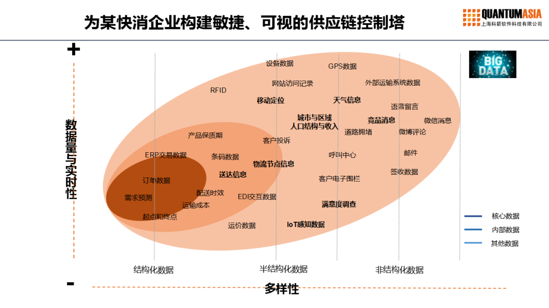 快消企業使用科箭系統之后,可以把結構化、非結構化、半結構化的數據,通過系統進行采集,包括訂單數據、物流節點之間的數據、天氣、GPS數據、道路、評論等,系統對這些數據進行整合、分析、預測,通過數據大屏的物流控制塔進行異常預警提醒,實現數字化供應鏈的監控管理。