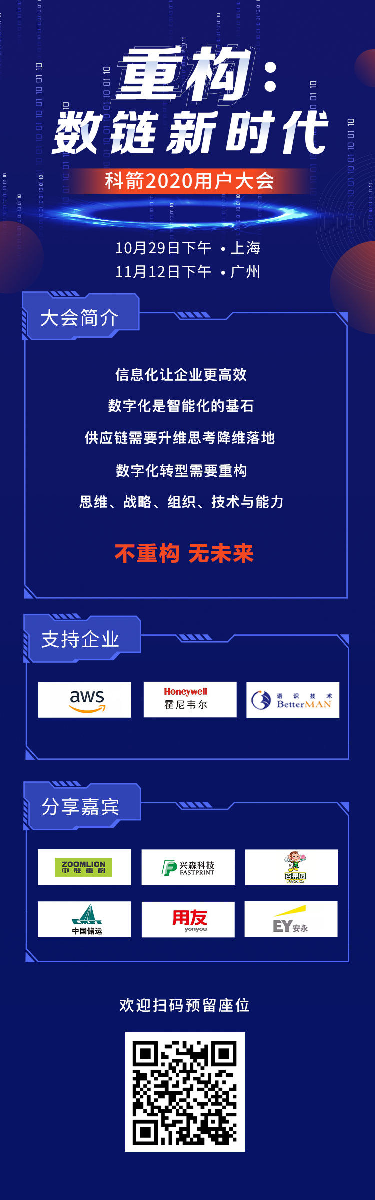 據悉,11月12日,“重構:數鏈新時代”科箭2020用戶大會 · 廣州站將在廣州富力君悅大酒店隆重舉行,更多科箭用戶、合作伙伴、行業(yè)專家將出席大會,敬請期待。