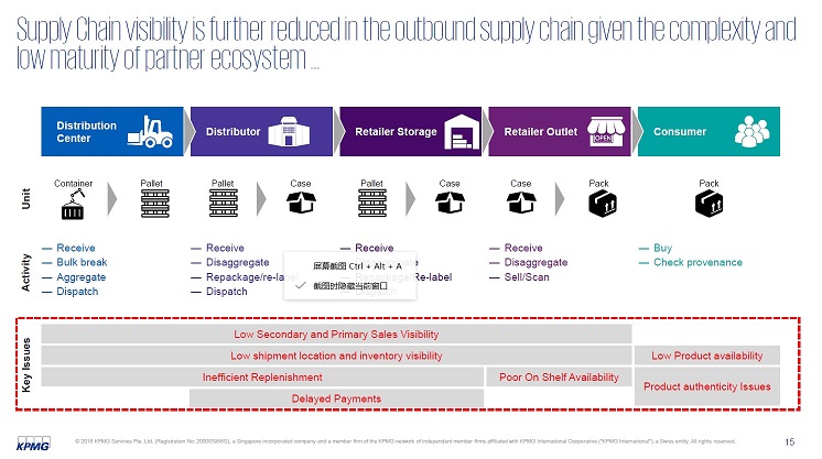 最基本的問題是什么?可視化問題。為什么會出現這個問題?從原材料供應商到工廠、分發中心、物流港口一直到生產制造中心到消費者,十幾個環節,你自己本身用的軟件不下于三個,一定有ERP,WMS可能還不用ERP做,我很清楚這個問題,后端用ERP、SRM的,但是到了中間過程就完了,SD前面的訂單到了DMS里面訂單傳不過來。本身信息在全鏈路里面是斷開的,這是一個最基本的問題,而且是所有的供應鏈現在面臨的最基礎的問題。這個情況下你想做精準鋪貨、銷售預測,按照客戶的不同需求定制我的服務,不可能。我下面紅色的字就是目前供應鏈遇到的大問題,比如低產能的可變性,包括更靈活的鋪貨,就沒有可能性了。我們要解決供應鏈里面的問題,解決可視化、透明化的問題,先把這個問題解決掉,然后再談數字化。