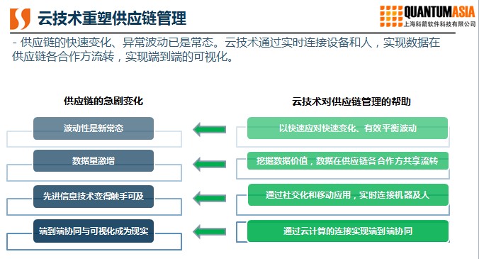 二、云技術通過實時連接設備和人,實現數據在供應鏈各合作方流轉,實現端到端的可視化,從而應對供應鏈的異常波動。