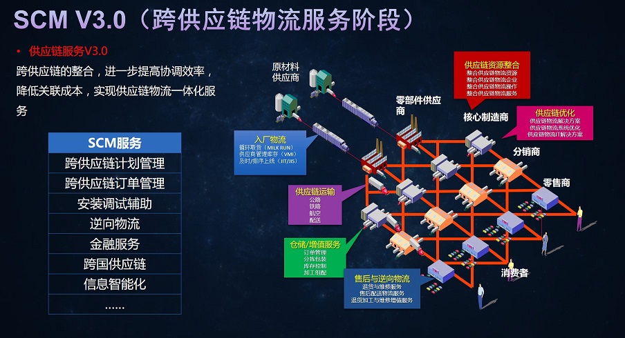供應鏈V1.0階段,核心是各個供應鏈各個環節的成本優化階段,通過各種物流模式與自營、外包等形式,降低各環節的物流成本。運輸、倉儲等服務的招標是基本特征。