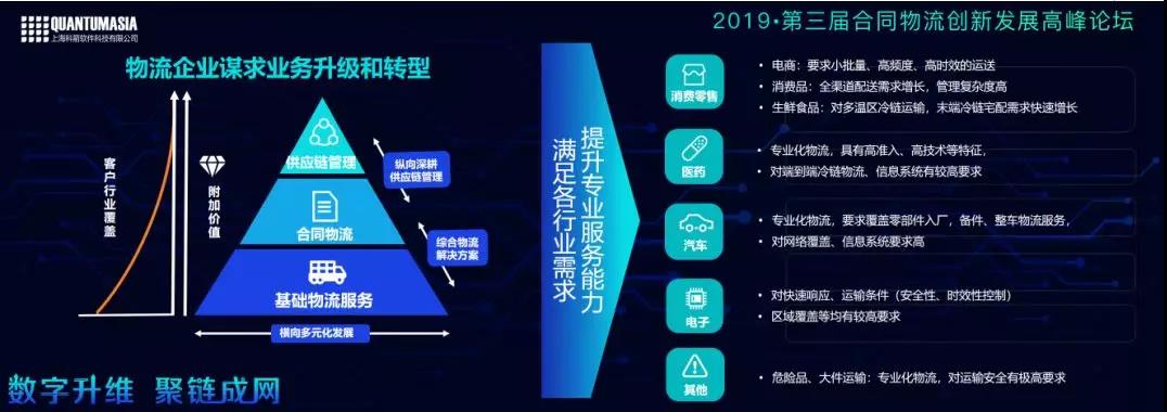 對合同物流企業(yè)來說,不同行業(yè)的客戶會有不同的需求,比如:消費(fèi)零售、電商行業(yè),追求小批量、快速、高頻度、高時效的運(yùn)送。消費(fèi)品行業(yè)對全渠道、所有業(yè)務(wù)配送的增長需求很快,管理復(fù)雜度很高。生鮮食品行業(yè)對溫控、冷鏈運(yùn)輸?shù)男枨蠛芨摺@些都對合同物流企業(yè)提出了要求。比如:在醫(yī)藥行業(yè),有專業(yè)化的物流,有自己的準(zhǔn)入標(biāo)準(zhǔn),如醫(yī)藥合規(guī)的一些監(jiān)控,對物流企業(yè)的系統(tǒng)有很高的要求。汽車行業(yè)的入場、出場、備件、整車等,對物流的運(yùn)輸倉儲、物流配送,到主機(jī)廠,供應(yīng)商庫存的管理等,都提出了網(wǎng)絡(luò)覆蓋的要求,對信息化系統(tǒng)的要求也很高。還有,3C電子、電子類交付行業(yè),要求實現(xiàn)快速響應(yīng)。