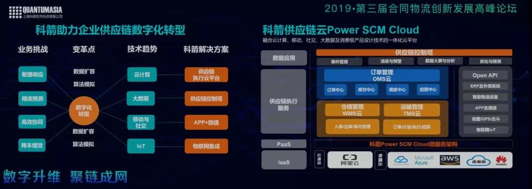科箭軟件創(chuàng)立于2003年,已經(jīng)具有16年供應(yīng)鏈信息化經(jīng)驗的企業(yè),為響應(yīng)供應(yīng)鏈創(chuàng)新這一國家戰(zhàn)略,支撐企業(yè)向現(xiàn)代供應(yīng)鏈轉(zhuǎn)型,科箭也在不停地進(jìn)行變革。科箭在2015年推出了新一代基于云架構(gòu)設(shè)計的產(chǎn)品,公有云平臺是建在阿里云IaaS上的,同時也支持華為云、微軟云、AWS等私有云的部署。在PaaS層,基于科箭Power SCM Cloud微服務(wù)架構(gòu),來滿足供應(yīng)鏈執(zhí)行層面不同的服務(wù)需求。在企業(yè)應(yīng)用服務(wù)SaaS層,我們主要提供了三朵云:第一,訂單管理云,做全渠道訂單的接入、調(diào)度、結(jié)算,并通過訂單去驅(qū)動物流業(yè)務(wù)執(zhí)行。第二,倉儲管理云,管理相應(yīng)的入庫、出庫、庫內(nèi)管理等倉儲相關(guān)業(yè)務(wù)。第三,運(yùn)輸管理云,管理從運(yùn)輸定單的計劃、調(diào)度、執(zhí)行到結(jié)算。