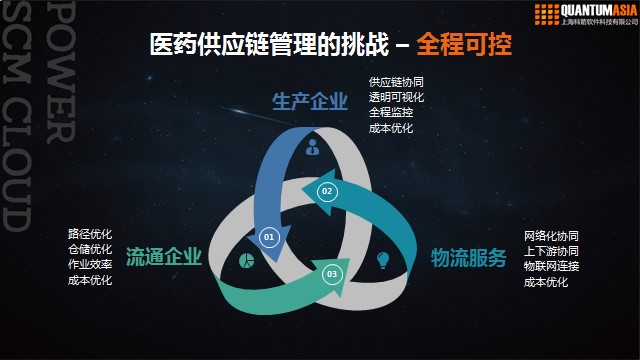 醫(yī)藥供應(yīng)鏈管理的最大挑戰(zhàn)是全程可控。云服務(wù)通過連接供應(yīng)鏈上各個參與者,具有高度協(xié)同化和高效化的特點,并保持全流程的透明度,讓整個業(yè)務(wù)過程變得可視,從而達(dá)到全程監(jiān)控的目的。