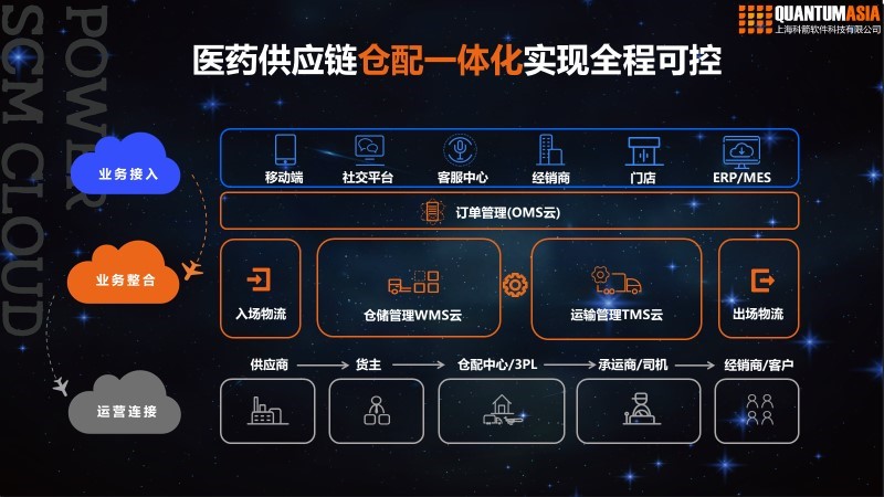 不同的業(yè)務(wù)處于不同環(huán)節(jié),倉配一體化的云服務(wù)整合的系統(tǒng)才能提升整體效率??萍墓?yīng)鏈管理云套件-Power SCM Cloud正是集業(yè)務(wù)接入、業(yè)務(wù)整合、運營連接為一體的新型供應(yīng)鏈解決方案。