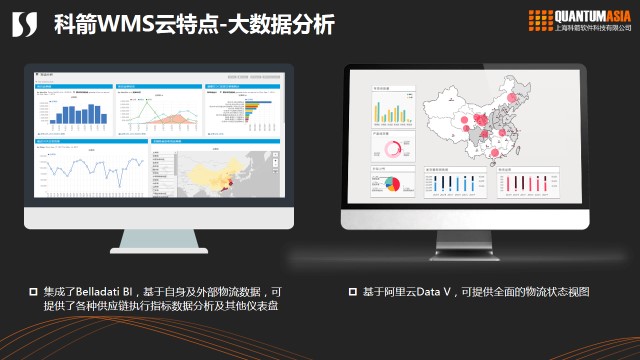 我們有了系統(tǒng)記錄的很多數(shù)據(jù)與流程,最終目的是要能把這些數(shù)據(jù)用起來(lái)。我們集成了國(guó)外先進(jìn)的BI工具,用戶(hù)就可以通過(guò)這個(gè)工具來(lái)對(duì)自己的業(yè)務(wù)數(shù)據(jù)做更多分析,實(shí)現(xiàn)數(shù)據(jù)化。另外我們的云服務(wù)是跑在阿里云平臺(tái),所以阿里那些的大數(shù)據(jù)展示工具也在我們的系統(tǒng)里面有集成,我們客戶(hù)可以通過(guò)此功能搭建自己的物流數(shù)據(jù)大屏。