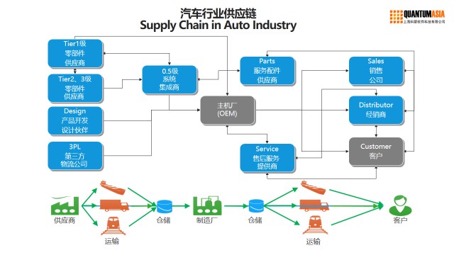 一直以來,汽車物流業都是被國際物流同行所公認的最復雜、最專業的領地。汽車行業供應鏈管理目標是在滿足客戶需要前提下,對整個供應鏈(從供貨商,制造商,分銷商到消費者)的各個環節進行綜合管理,例如從供應商管理、運輸、倉儲、制造、再配送到經銷商、消費者的整個供應鏈的貨物流、信息流和資金流,把物流與庫存成本降到最小。